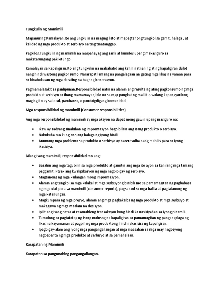 Ano Ang Ibig Sabihin Ng Tungkulin Ng Mamimili