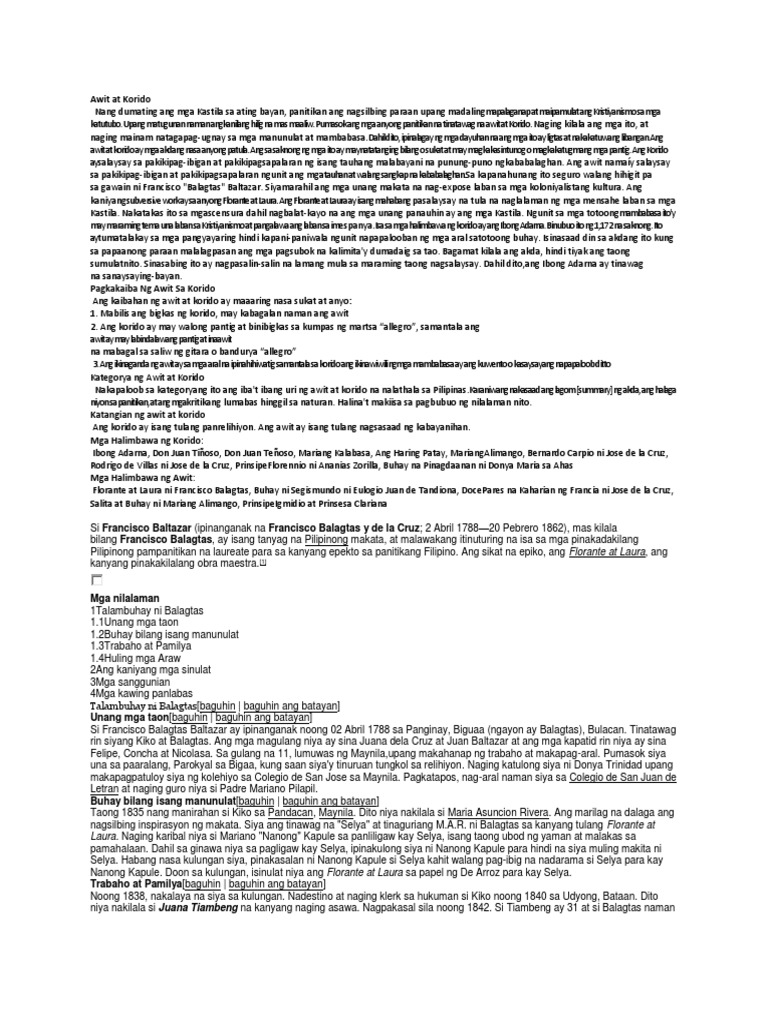 Francisco Balagtas y de la Cruz Ginamit ang Balagtas na apelyido dahil sa kautusan ni Gobernador Heneral Narciso Claveria y Zaldua noong 1849 27. Sa kalahatan ng Florante at Laura tinuturing ni Balagtas ang mga ibat ibang mga suliranin na bansa nating tulad ng laban ng. Isang obra-maestra ni Francisco Baltasar na kilala din bilang Balagtas isinulat niya ito sa loob ng kulungan.