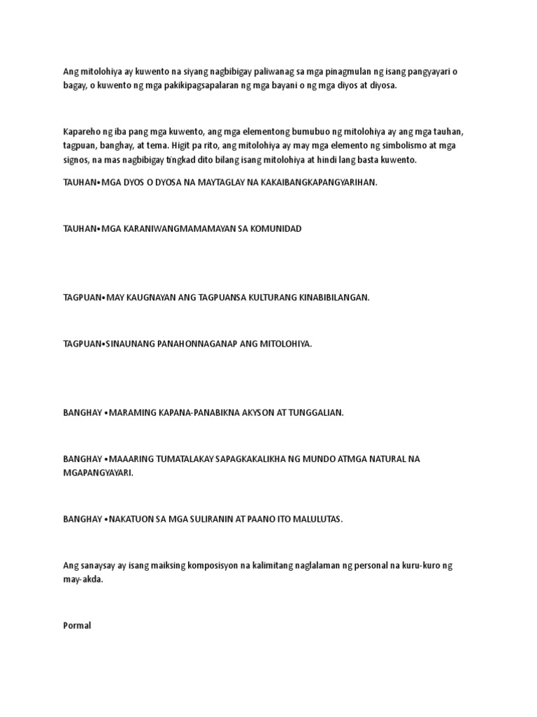 Sa anong salita nagmula ang mito at ano ang kahulugan ng. Halimbawa na ang kung paano nagkaroon ng hangin o mga karagatan. Another question on Filipino.